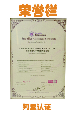 金裕制罐獲得的阿里巴巴認證